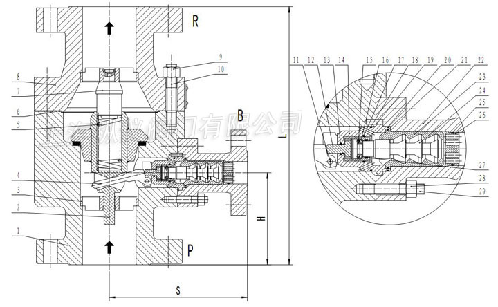 ■ 再循環(huán)控制:自動再循環(huán)閥可以將泵正常運行所需要的最小流量通過旁路吸入到存儲裝置中,調(diào)節(jié)水泵的H-Q特性,實現(xiàn)再循環(huán)。